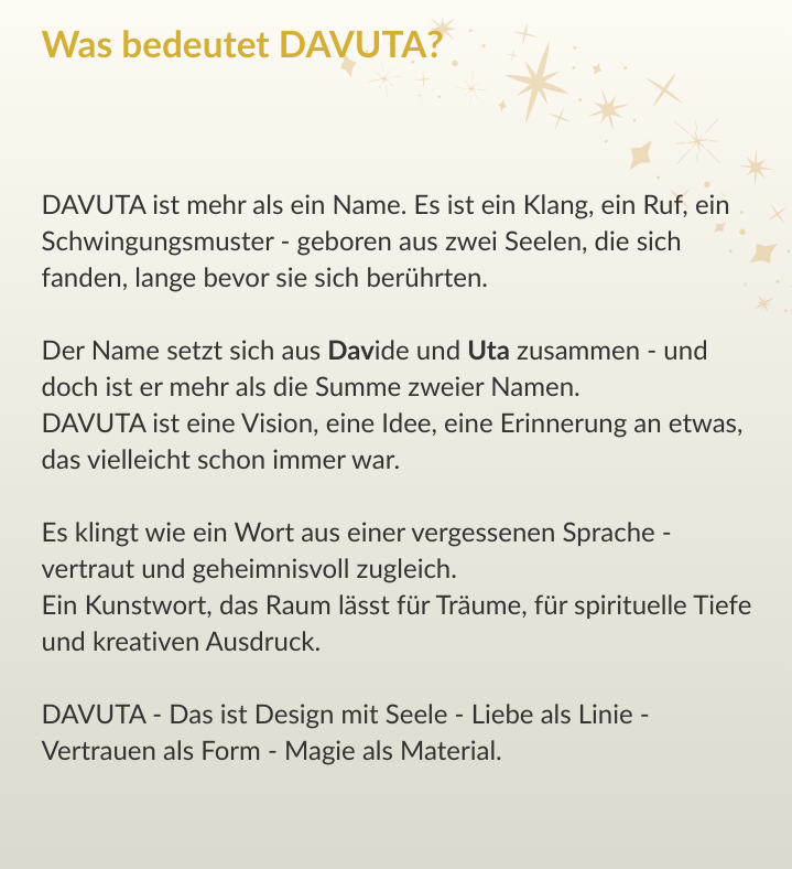 DAVUTA steht für Authentizität - ein Herzensprojekt, das du in jedem Detail spürst.